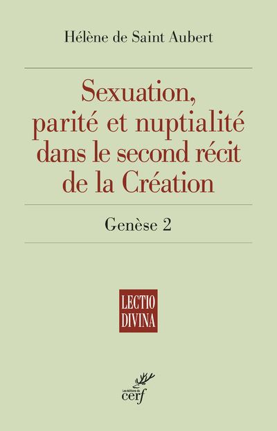 * Hélène de Saint-Aubert, Sexuation, parité et nuptialité dans le second récit de la Création, Genèse 2, éditions du Cerf 2023