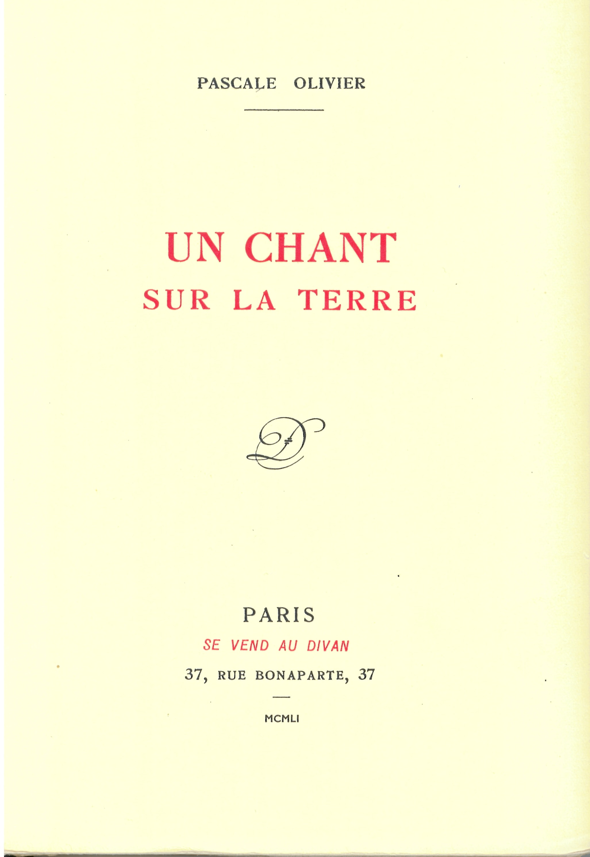 À titre d’illustration, je reproduis ci-dessous quatre poèmes qui se suivent dans la seconde partie intitulée « Heures d’ombre, 1940-1945 » – qu’il faut replacer dans le climat, les peurs et les espoirs de ces années – du recueil « Un chant sur la terre » publié aux éditions du Divan en 1951.