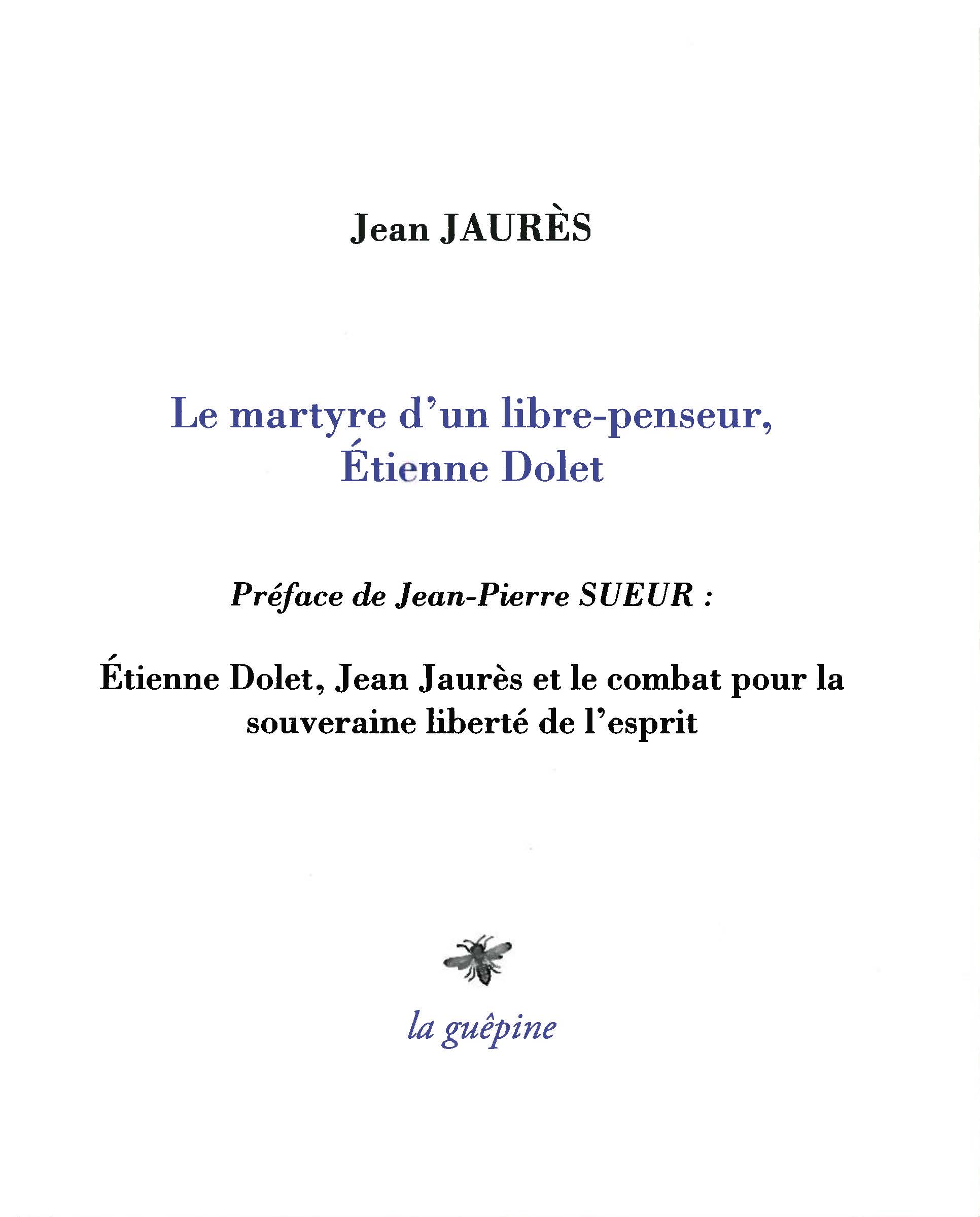 En prélude à ce texte, le même ouvrage contient une analyse de quarante-deux pages de Jean-Pierre Sueur intitulée : « Étienne Dolet, Jean Jaurès et le combat pour la liberté de l’esprit ». Il y explique que « Dolet et Jaurès se rejoignent l’un et l’autre, au-delà des époques. Ils auront connu les mêmes épreuves. On aura voulu les anéantir. Mais ils savaient l’un et l’autre que c’était vain et que rien n’anéantirait ce qu’il faut avant tout servir quoi qu’il en coûte – la souveraine liberté de l’esprit. »