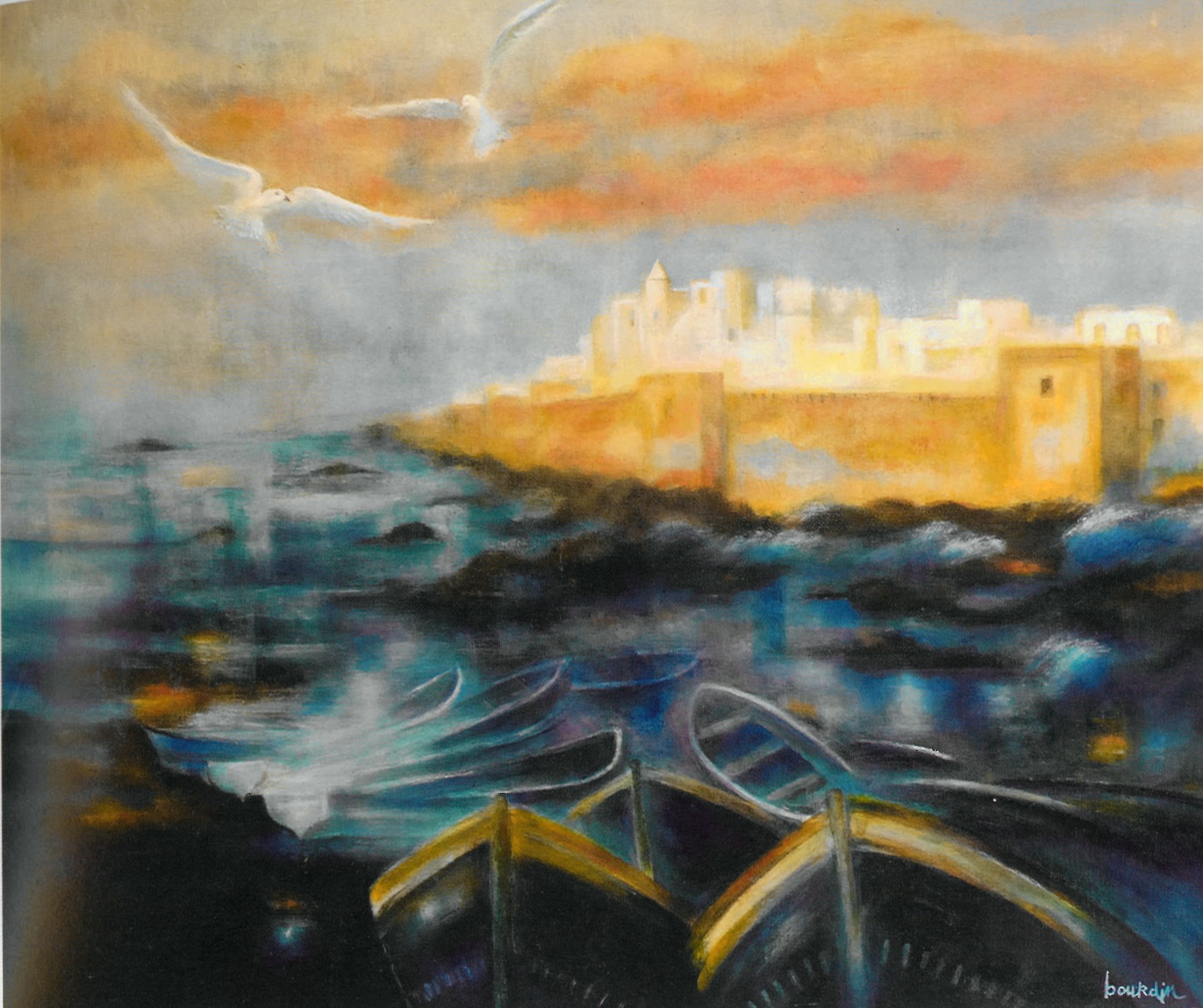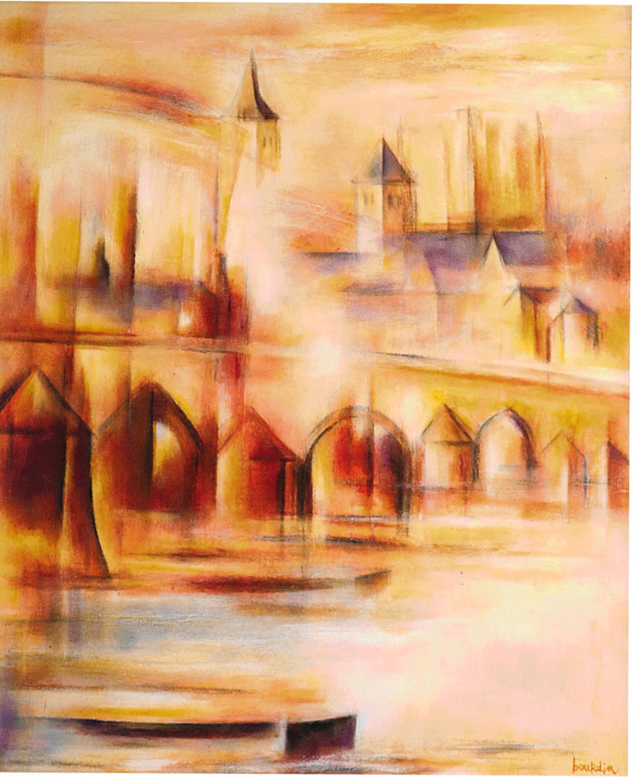Il est vrai que Beaugency est une ville fabuleuse. Il n’est pas étonnant qu’elle attire autant les écrivains, les philosophes et les artistes. C’est une ville qui est penchée vers la Loire, indolente ou violente – c’est selon. Mais la pente qui mène à la Loire compte nombre de hauts monuments de pierre dont la verticalité compose avec la cité et son fleuve des harmonies changeantes qui ont – bien sûr – fasciné Claude Bourdin, comme elles fascinent tout visiteur. Si bien qu’il saisit au bout de son pinceau la géométrie de la cité et les courbes naturelles du fleuve – il « habite la Loire », écrit Olivier Rigaud –, et que là, à Beaugency, comme en tous lieux magiques du Val de Loire, comme à Saint-Benoît-sur-Loire, la culture et la nature s’unissent pour constituer un paysage sublimement harmonieux, réponse, oui, réponse, et forte réponse, à tous ceux qui professent que l’œuvre de l’homme se traduit inéluctablement par une destruction de la nature et de la beauté. Le contraire peut être vrai, comme le montre le miracle de Beaugency – et de son pont riche d’histoire et lourd de poésie devant lequel il nous arrive de rêver inlassablement.