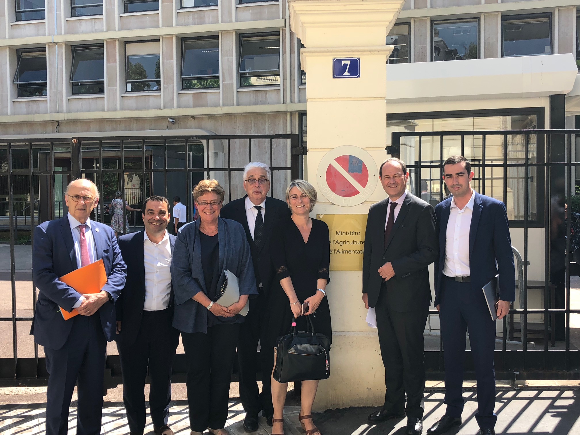 Marianne Dubois, Stéphanie Rist, Claude de Ganay, Richard Ramos, Hugues Saury et Jean-Pierre Sueur, parlementaires du Loiret, et Maxime Buizard, président des Jeunes Agriculteurs 45 et représentant de la profession agricole, ont été reçus ce mercredi 27 juin au ministère de l’Agriculture par Hervé Durand, directeur général adjoint de la Direction générale de la performance économique et environnementale des entreprises. Ensemble ils ont appelé à une révision réaliste du schéma actuel des zones défavorisées simples qui prévoit la sortie de communes mettant à mal un certain nombre d’exploitations. Ils transmettront prochainement au ministre de l’agriculture, une proposition concrète qui sera élaborée en lien avec les professionnels du secteur. Ils ont également appelé de leurs vœux la mise en place d’un dispositif d’accompagnement pour les agriculteurs qui seraient exclus de la nouvelle carte des zones défavorisées simples qui entrera en vigueur au 1er janvier 2019. Par ailleurs ils ont défendu avec force le principe de continuité territoriale pour la reconnaissance du Loiret dans la Zone Intermédiaire.